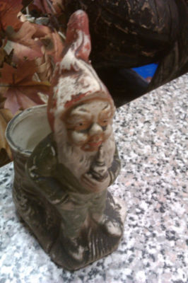 Antique Gnome Elf Glass Porcelain Japan? Markings Smoking Pipe