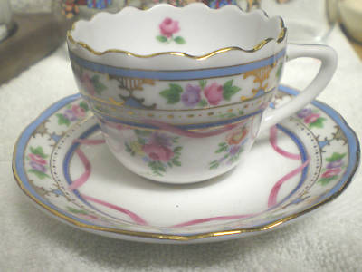 COLLECTIBLE CHINA CUP & SAUCER FLOWERS & RIBBON # 16
