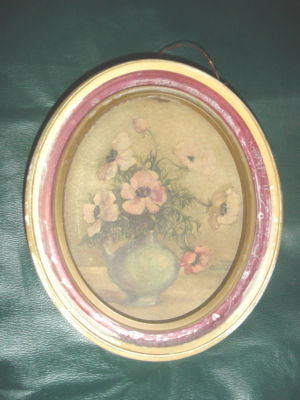 Vintage Poppy Flower Print in Oval Plaster 8 inch Frame