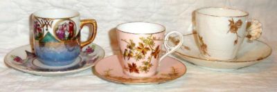 Title (ebay affiliate link): 3 Miniature Cups/Saucers HAND PAINTED 1800s Gutherz LIMOGES + CFH/GDM + Wachter