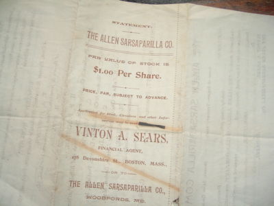 Title (ebay affiliate link): 1893 "Allen Sarsaparilla(Quack Medicine),$1.00 per.Share"Woodford's,Me.,letter!