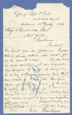 Title (ebay affiliate link): 1882 POPE & COLE COPPER REFINING MINING BALTIMORE SAN JOSE WILLIAM KEYSER LETTER