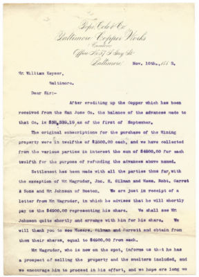 Title (ebay affiliate link): 1883 POPE, COLE & CO. BALTIMORE COPPER WORKS SAN JOSE MINING CANTON LETTER