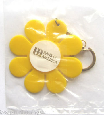 Title (ebay affiliate link): Vintage 1960s Yellow Hippie Flower Bank of America Keychain New in Original Wrap