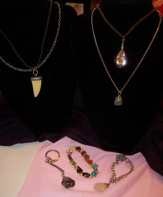 Title (ebay affiliate link): lot 6 vintage jewelry polished stones tooth necklace bracelet keychain