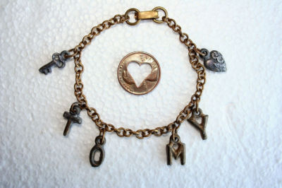 Title (ebay affiliate link): "Key To My Heart" Antique Brass Link Chain Charm Bracelet Vintage Pewter? Charms