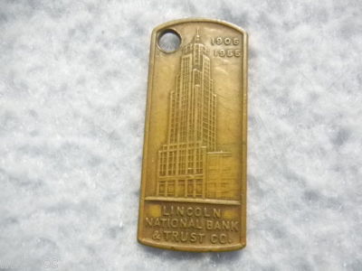 Title (ebay affiliate link): Vintage Copper "Return" Keychain,Lincoln Natl.Bank& Trust 1905-1955