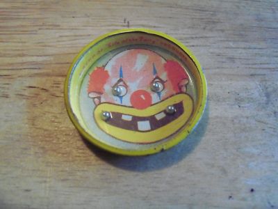 VINTAGE KIRCHHOF "LIFE OF THE PARTY" METAL CLOWN PUZZLE TOY 1 3/8" DIAMETER