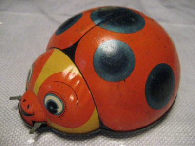TIN TOY LITHO WIND UP LADYBUG T.N. JAPAN WORKING