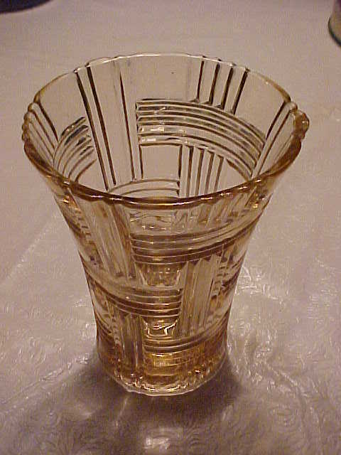 Title (ebay affiliate link): Lg Pink Depression Glass Vase CrissCross Prismatic Pat.