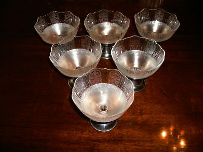 Title (ebay affiliate link): Vintage Frost Glass PAT DEPRESSION Cups Metal Base SET OF SIX (6) Custard Cups