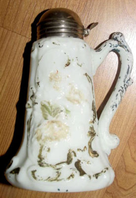 Victorian flower milk glass Syrup Pitcher 1800's
