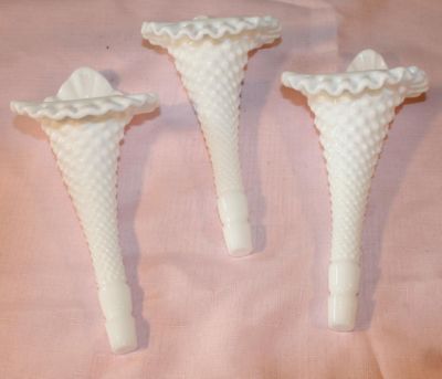 3 Vintage Fenton Hobnail Milk Glass Horns for Epergne Replacements