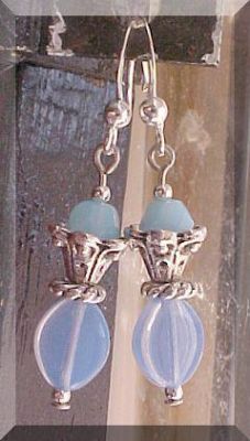 Chic FRENCH Blue Opal Milk Glass Beaded Artisan Earrings Sundance Shabby