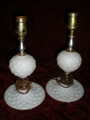 Vintage Milk Glass Hobnail Pair of Lamps, Lot of 2