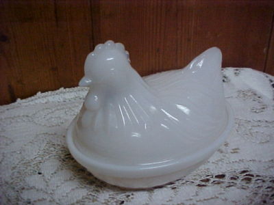 Title (ebay affiliate link): VINTAGE MILK WHITE GLASS CHICKEN ON NEST DISH FOR THE COLLECTOR