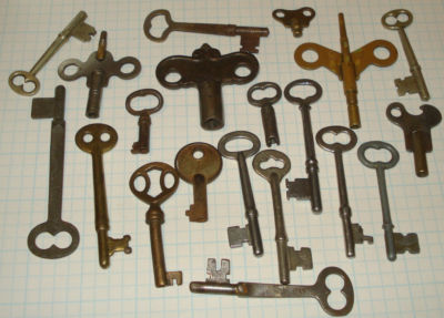Title (ebay affiliate link): 20 ANTIQUE FURNITURE CABINET KEYS SKELETON BRASS BARREL CLOCK SWIVEL