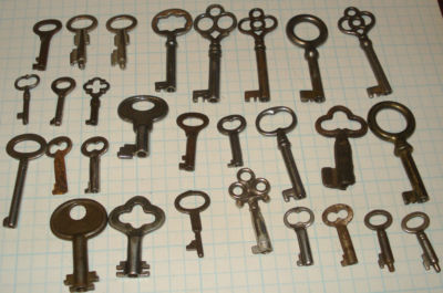 Title (ebay affiliate link): 28 ANTIQUE CABINET FURNITURE KEYS SKELETON BARREL 6 8 LEVER
