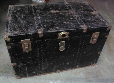Title (ebay affiliate link): VINTAGE Black Metal Primative Quilt Trunk 1940's RARE!