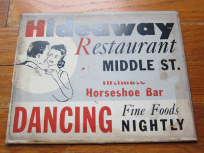 Title (ebay affiliate link): Old Mid-Century Vintage Hideaway Restaurant Advertising Sign