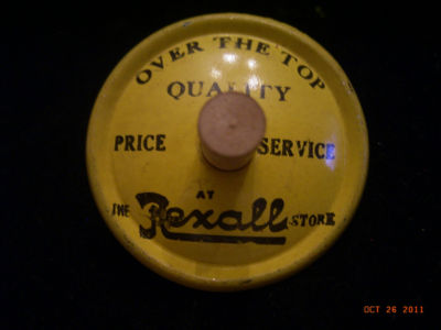 Title (ebay affiliate link): Vintage Advertising Toy Top Spinner "The Rexall Store" Metal and Wood