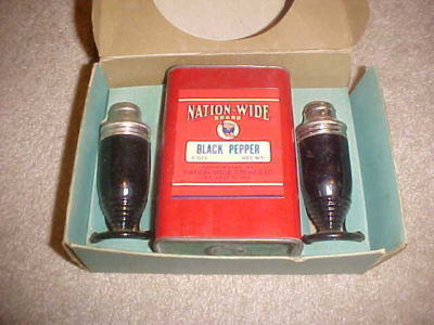 Title (ebay affiliate link): Nation-Wide Pepper Tin With Salt Pepper Shakers Gift Box Nation Wide Spice