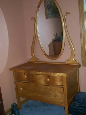 Title (ebay affiliate link): ANTIQUE GEYLER BIRDSEYE MAPLE VANITY DRESSER W/ MIRROR