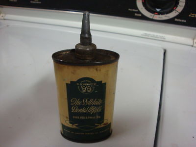 Title (ebay affiliate link): RARE ANTIQUE ADVERTISING OIL CAN S.S WHITE DENTAL MTG.CO