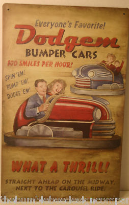 Vintage Metal Sign Carnival Fair Bumper Cars Rides