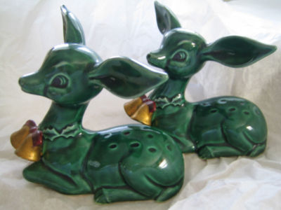 Title (ebay affiliate link): PAIR of Vintage Lefton Green Ceramic Baby Reindeer Gold Bells @@LOOK@@!!