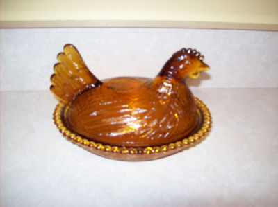 hen on a nest amber by indiana glass