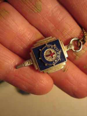 methodist key pendant & chain vintage enamel old older 3$shp!