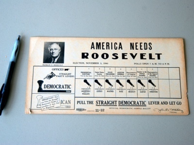 Title (ebay affiliate link): 1940 Philadelphia Pennsylvania Democratic Mock Ballot FDR ROOSEVELT and others