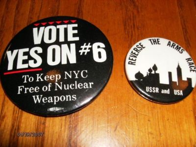 Title (ebay affiliate link): ANTI NUCLEAR ARMS PAIR OF LATE 70's/EARLY 80'S PINBACKS