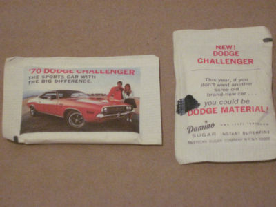 VINTAGE 2 1970 DODGE CHALLENGER SUGAR PACKETS ADVERTISING CAR CLASSIC DOMINIO