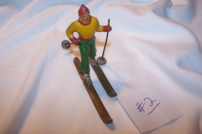 antique metal toy figure-snow skier