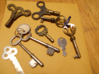 Antique Vintage old brass skeleton key lot cabinet furniture lock jewelry clock