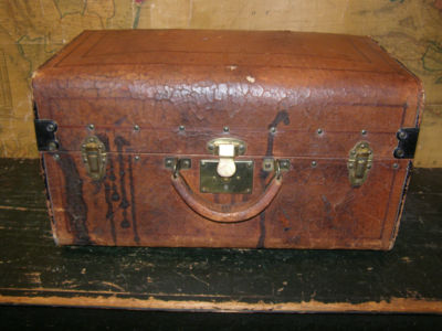Title (ebay affiliate link): Antique Leather Wood & Metal Chest Trunk Fraternal Crown & Cross Priest 1800's