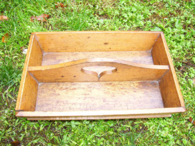 Title (ebay affiliate link): Antique Primitive Pine Wood Utensil Cutlery Knife Box Tray