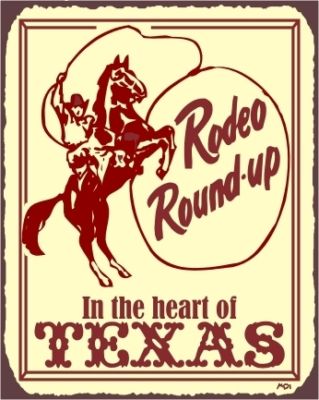 Rodeo Roundup in The Heart of Texas Horse Cowboy Lasso Vintage Metal Western Art