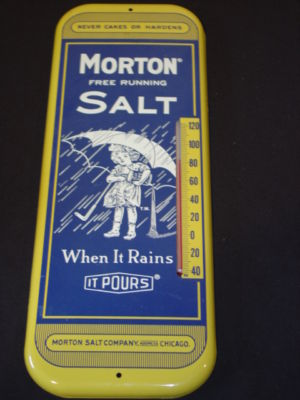 Title (ebay affiliate link): OUT OF THE ESTATE ATTIC MORTON SALT SIGN WITH THERMOMETER BUILT IN-SUPER FIND