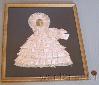 Title (ebay affiliate link): 30s vtg old antique deco RIBBON ART pink satin & lace BO PEEP PAPER DOLL framed