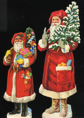 Vintage Christmas Die Cut Paper Santas 10 With Black Golliwog Dolls Lot Of 19