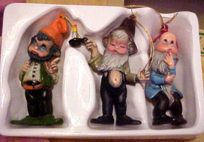 3 Vintage Macau Elf Christmas Ornaments