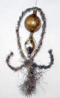 Title (ebay affiliate link): Early 1900s Tinsel & Two Glass Beaded Xmas Ornament. German