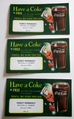 Title (ebay affiliate link): 3 Free Coca Cola Coupons For A Coke At Our Fountain / Roxbury / Sprite Boy Glass