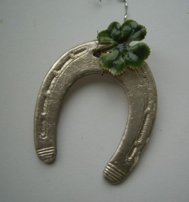 Title (ebay affiliate link): Antique CARDBOARD HORSE SHOE w/ PAPER QATERFOIL Christmas Tree Ornament