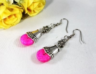 Title (ebay affiliate link): VTG Antique Silver Pink Turquoise Gemstone Earrings hp