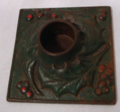 VTG OLD ANTIQUE CAST IRON CANDLE HOLDER W/HOLLY