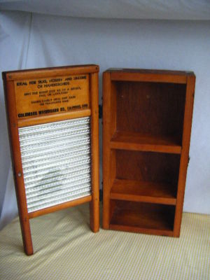 Title (ebay affiliate link): Vintage Laundry Wash Board Antique Wood Cabinet Primitive Home Wall Decor